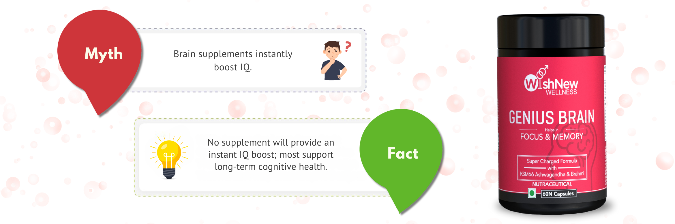Multivitamin: 31 nutrients (vitamins, minerals, adaptogens). Genius Brain: KSM-66 Ashwagandha, Brahmi.